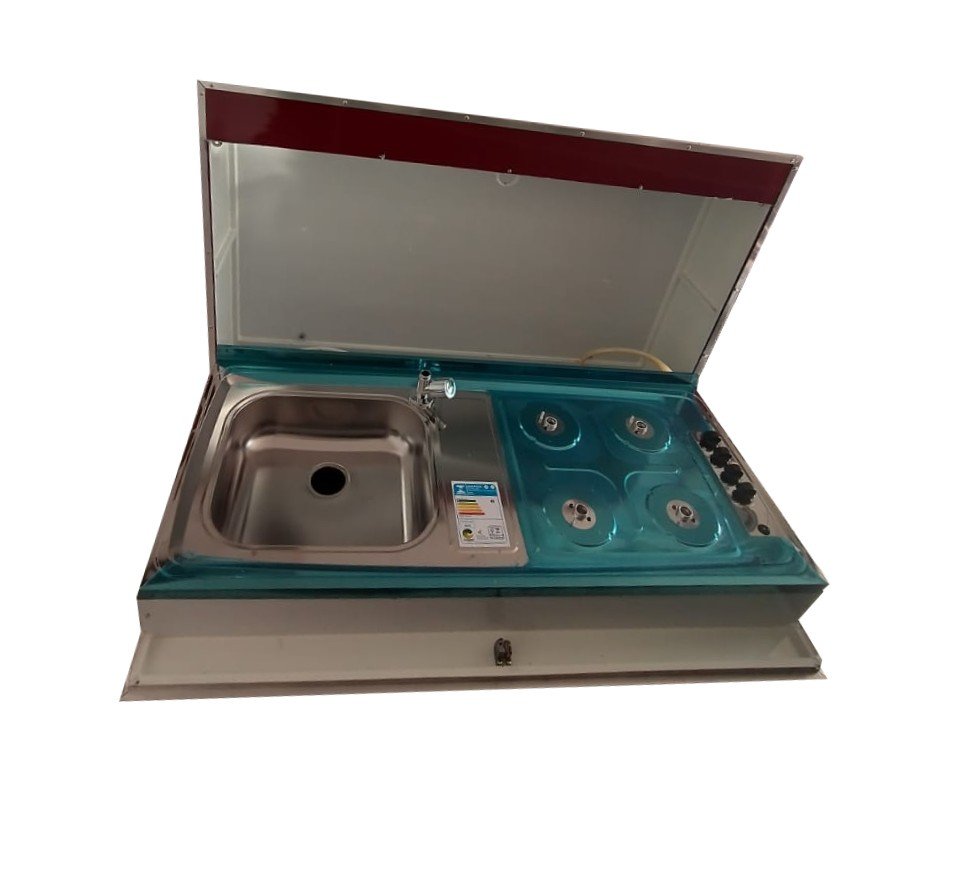Caixa para cozinha com fogão 4 bocas e cuba