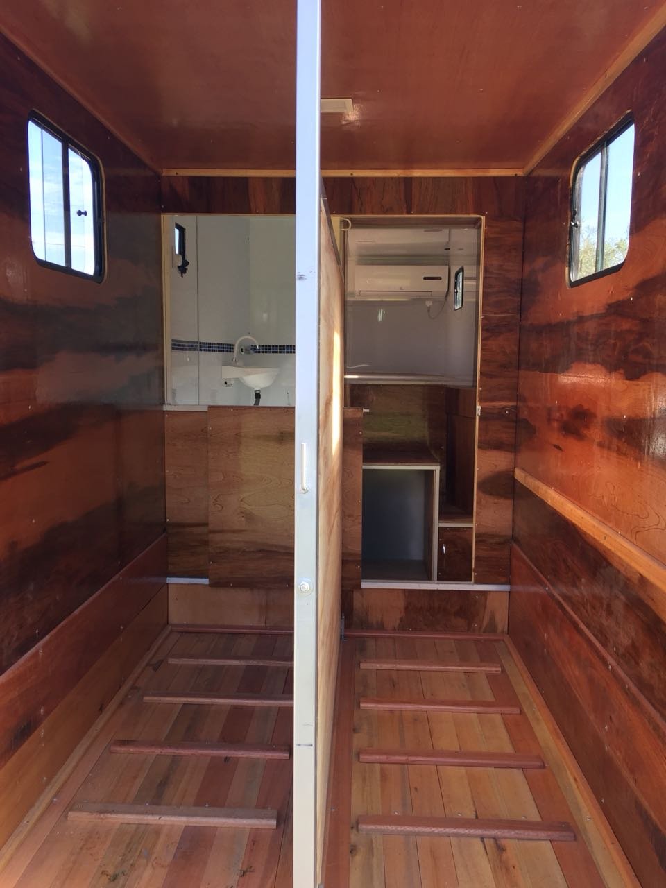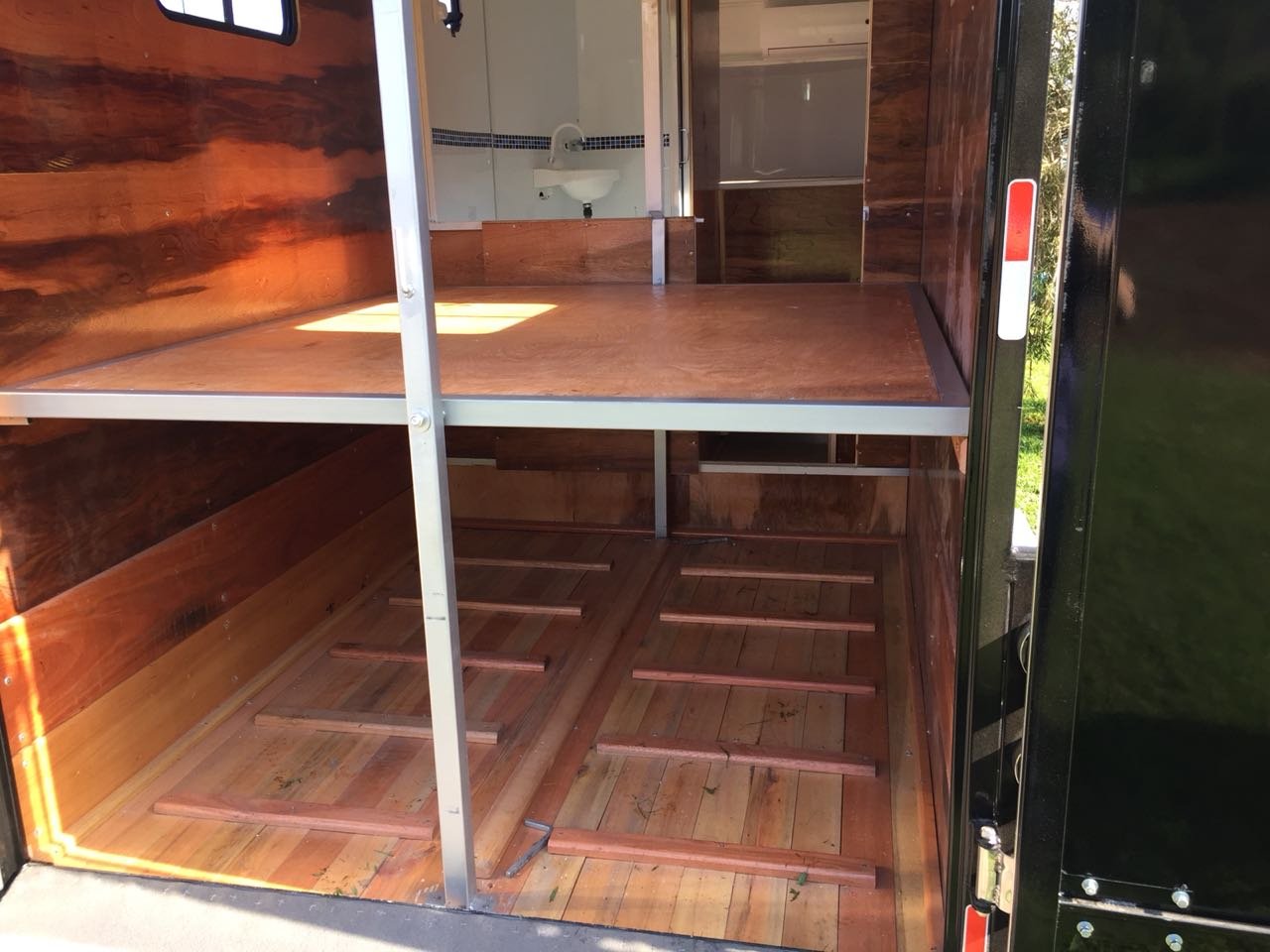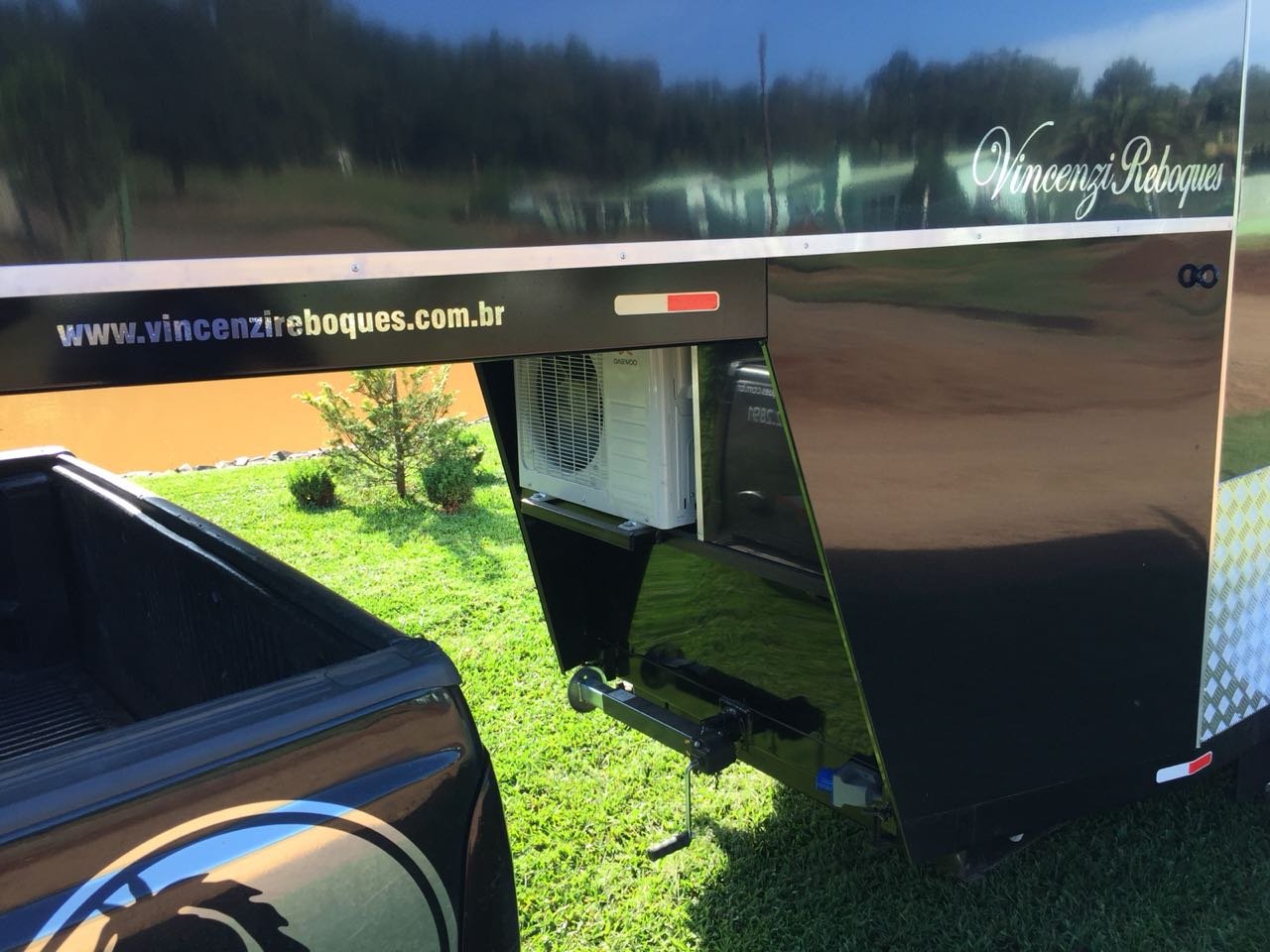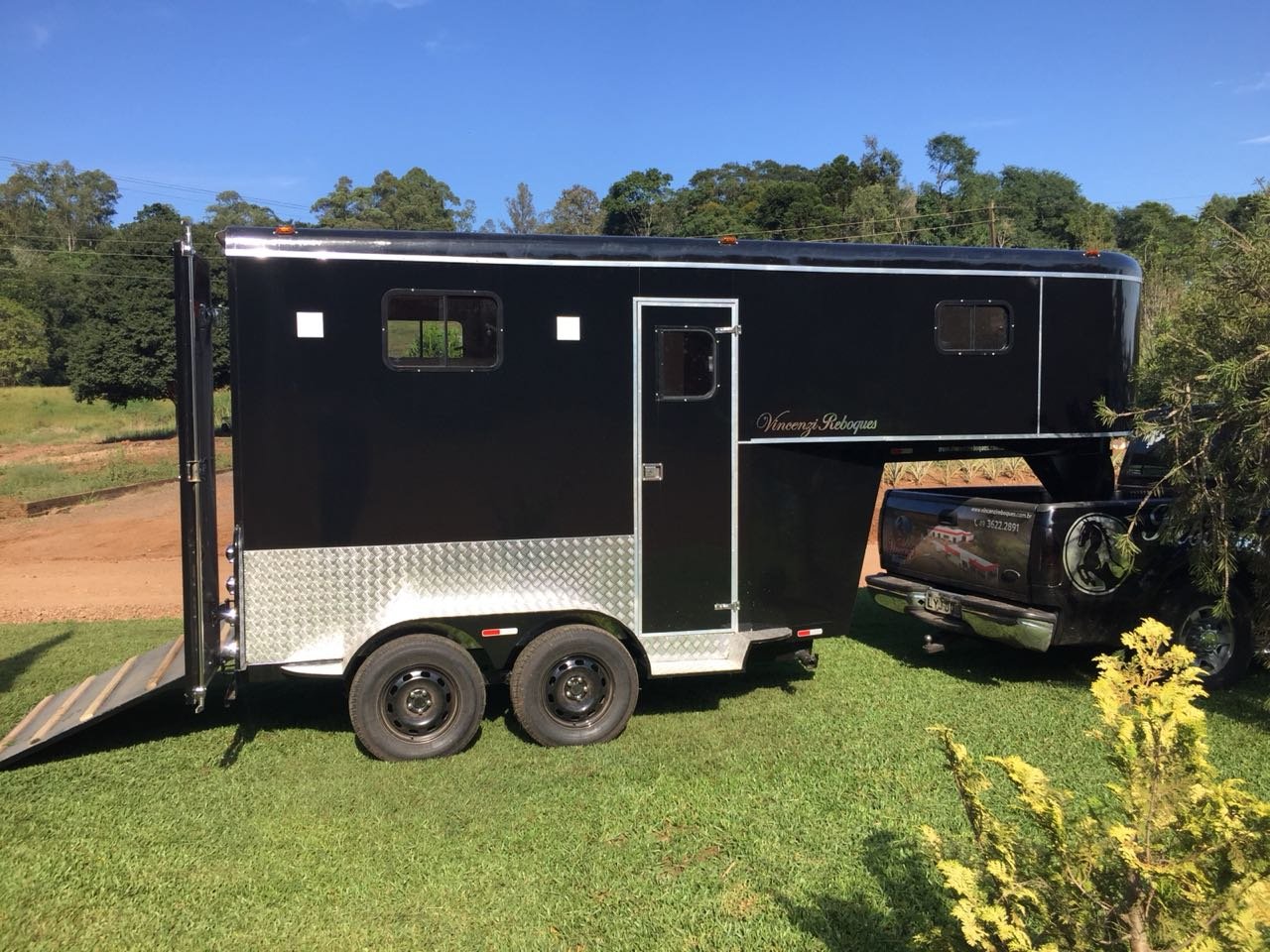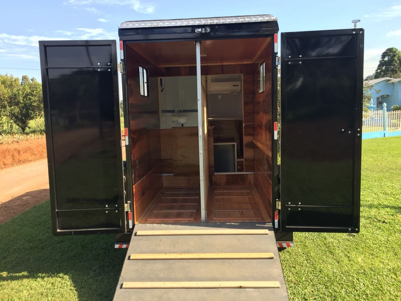 | Medidas externas 6,00 x 1,60 x 2,00 Chassi 100 x 40 x 15 x 3mm Para 02 cavalos Revestimento externo e interno Alumínio Teto em Fibra Freio Hidráulico nas 04 rodas Corrente de Segurança para o engate Assoalho e rampa Madeira beneficiada Ripas Antiderrapante Iluminação interna e externa em LED Porta Traseira Com dobradiça em inox Quarto de casal c/ armários Escada para subir na cama Bagageiro Interno Pessoal Banheiro revestido Em Alumínio Chuveiro Elétrico Vaso Importado econômico Pia no banheiro Bomba automática Schurfflo Depósito de Água de 120 litros Depósito de dejetos de 120 litros Amortecedores Suspensão Com Balancim Feixe de molas com 07 lâminas Rodas Aro 15/205/70 Pneus novos Estepe pneu novos Estrutura em perfil dobrado Espera para Frigobar Cavaleira em compensado naval | OPCIONAIS