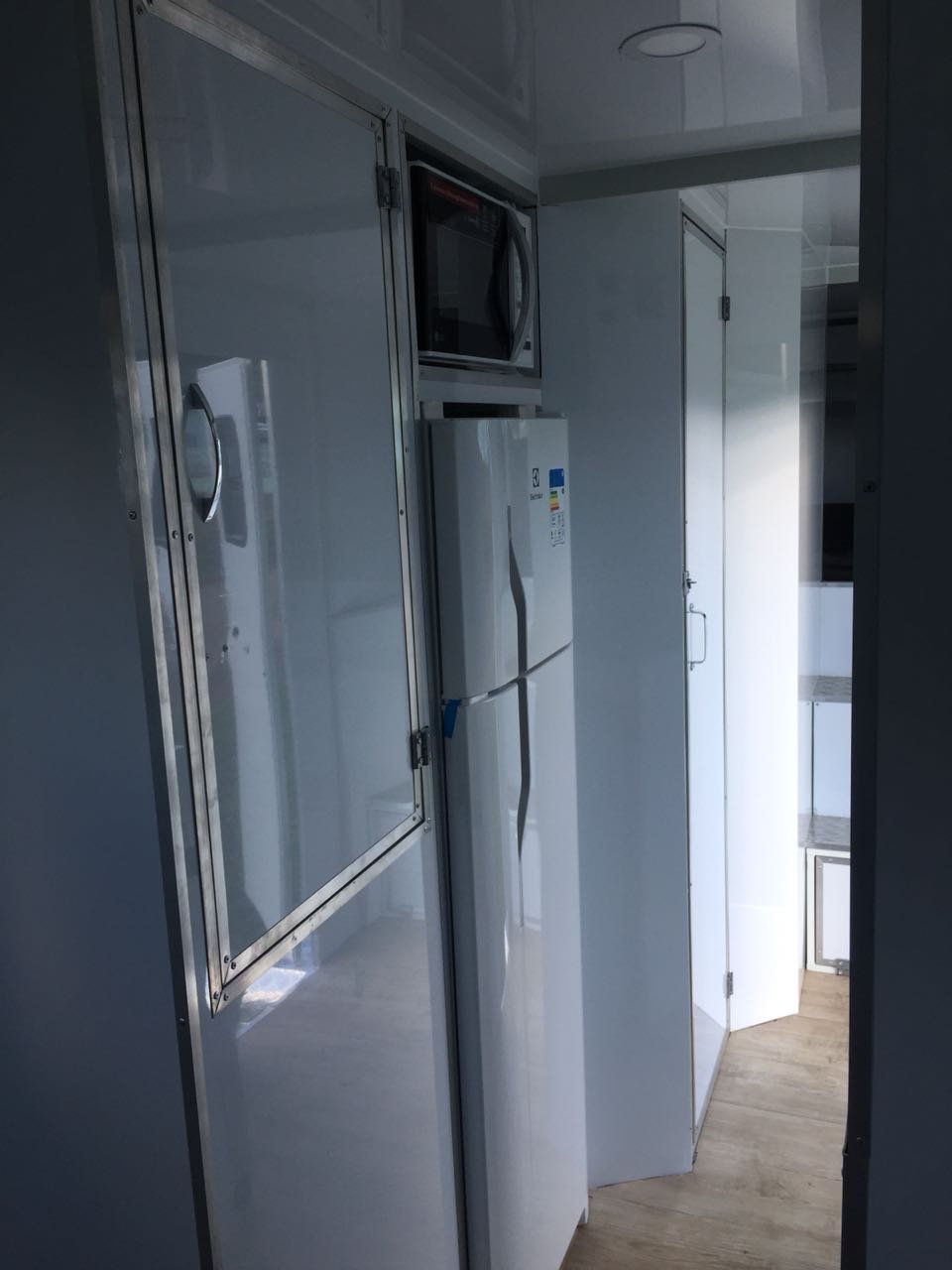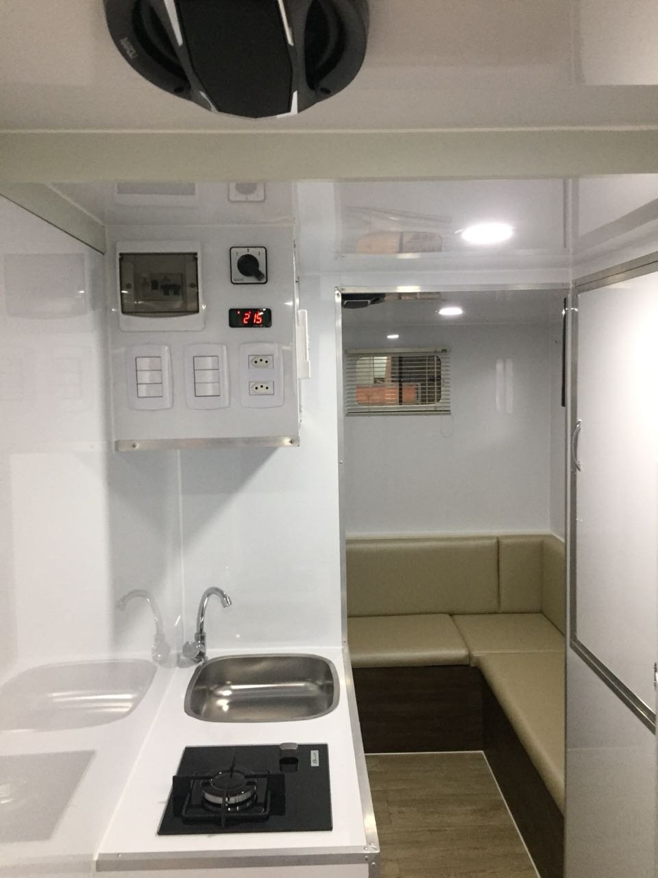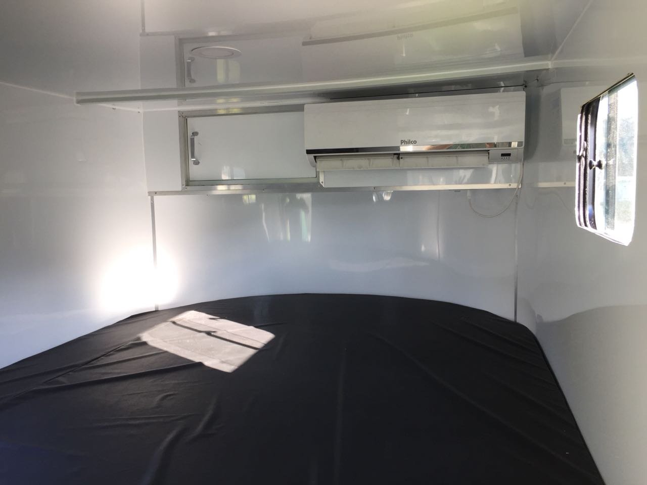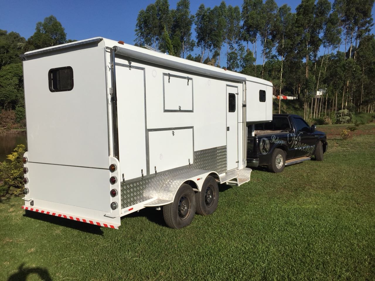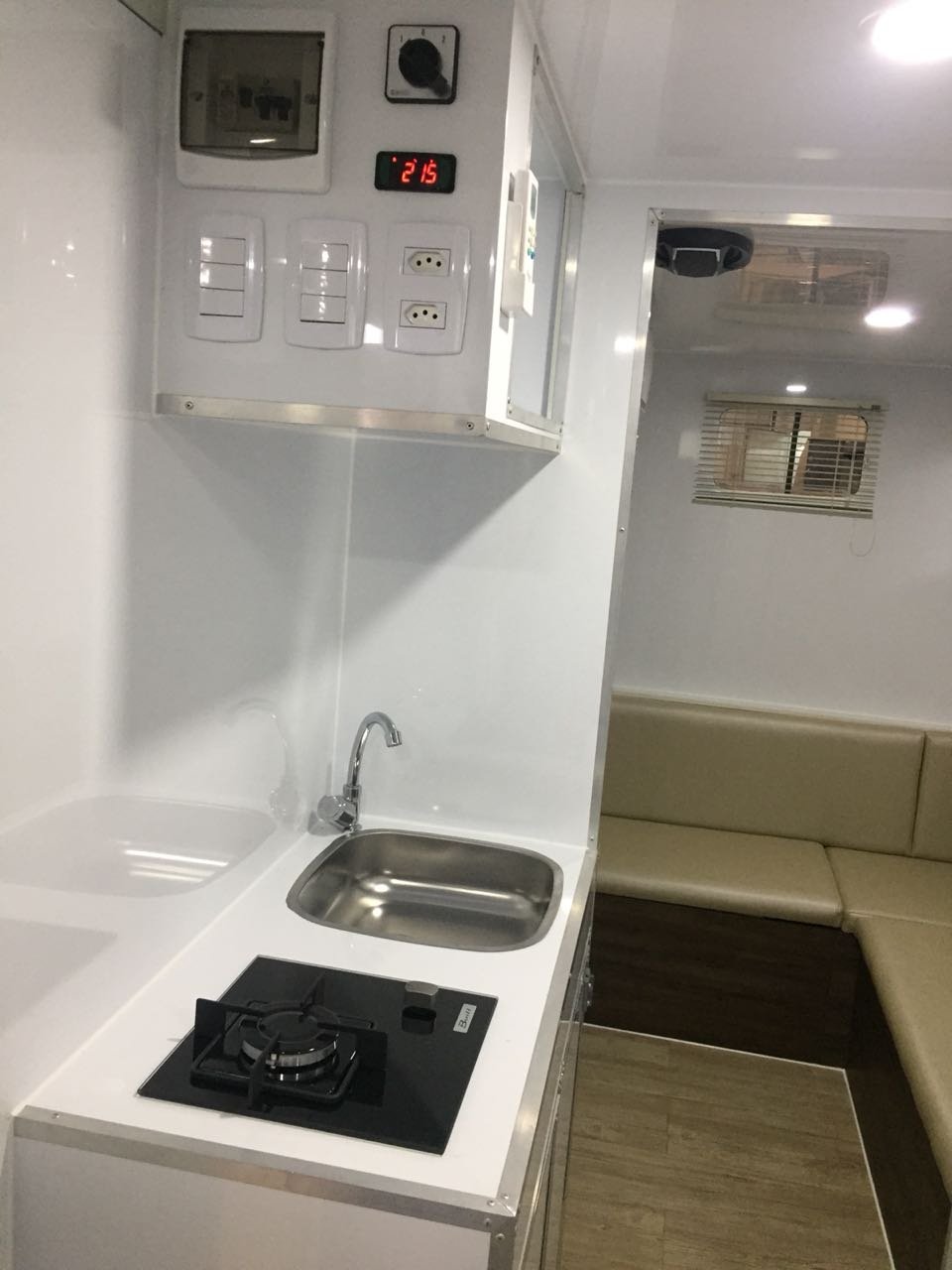 | Medidas externas 7,50 x 1,70 x 2,00 Chassi 100 x 40 x 15 x 3mm Revestimento interno e externo Alumínio Teto em Fibra Freio Hidráulico nas 04 rodas Iluminação interna e Externa LED Bagageiro Interno Pessoal Assoalho cozinha Comp. Naval/ Lâmina PVC Cama de Casal Pia e fogão externo embutido Chuveiro elétrico Vaso sanitário importado economico Banheiro Pia no banheiro Pé de Apoio manual Bomba de água automática shurflo Depósito de Água de 140 litros Depósito de dejetos de 140 litros Amortecedores Suspensão Com Balancim Feixe de molas com 07 lâminas Rodas S10 Aro 15 Pneus Novos 205/75/15 Estepe pneu novo Para-lamas Duplo Estrutura em perfil dobrado Mesa lateral embutida Espera de TV embutida Espera para TV | OPCIONAIS - Toldo Mecânico (Unidade)