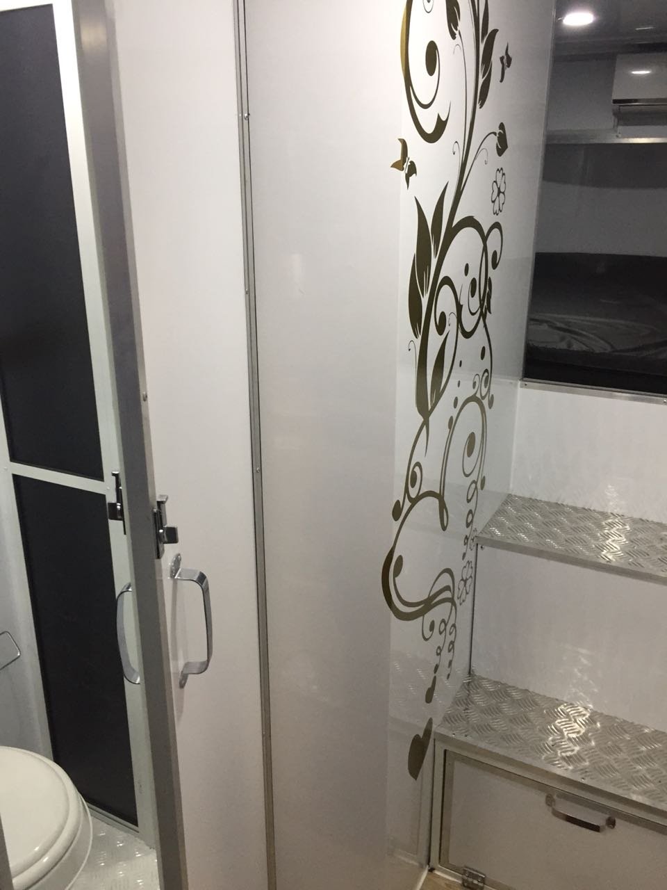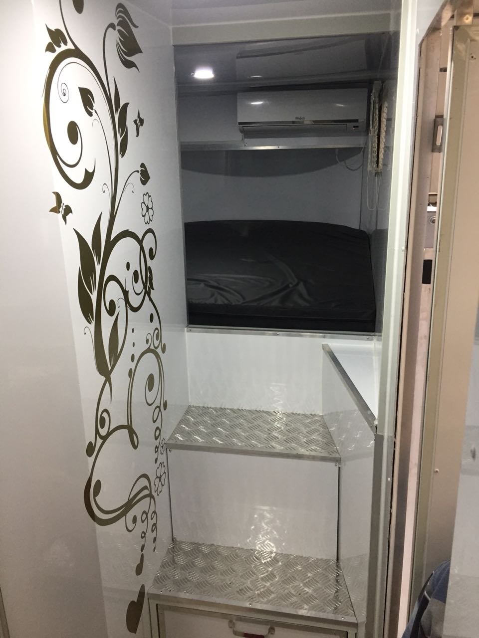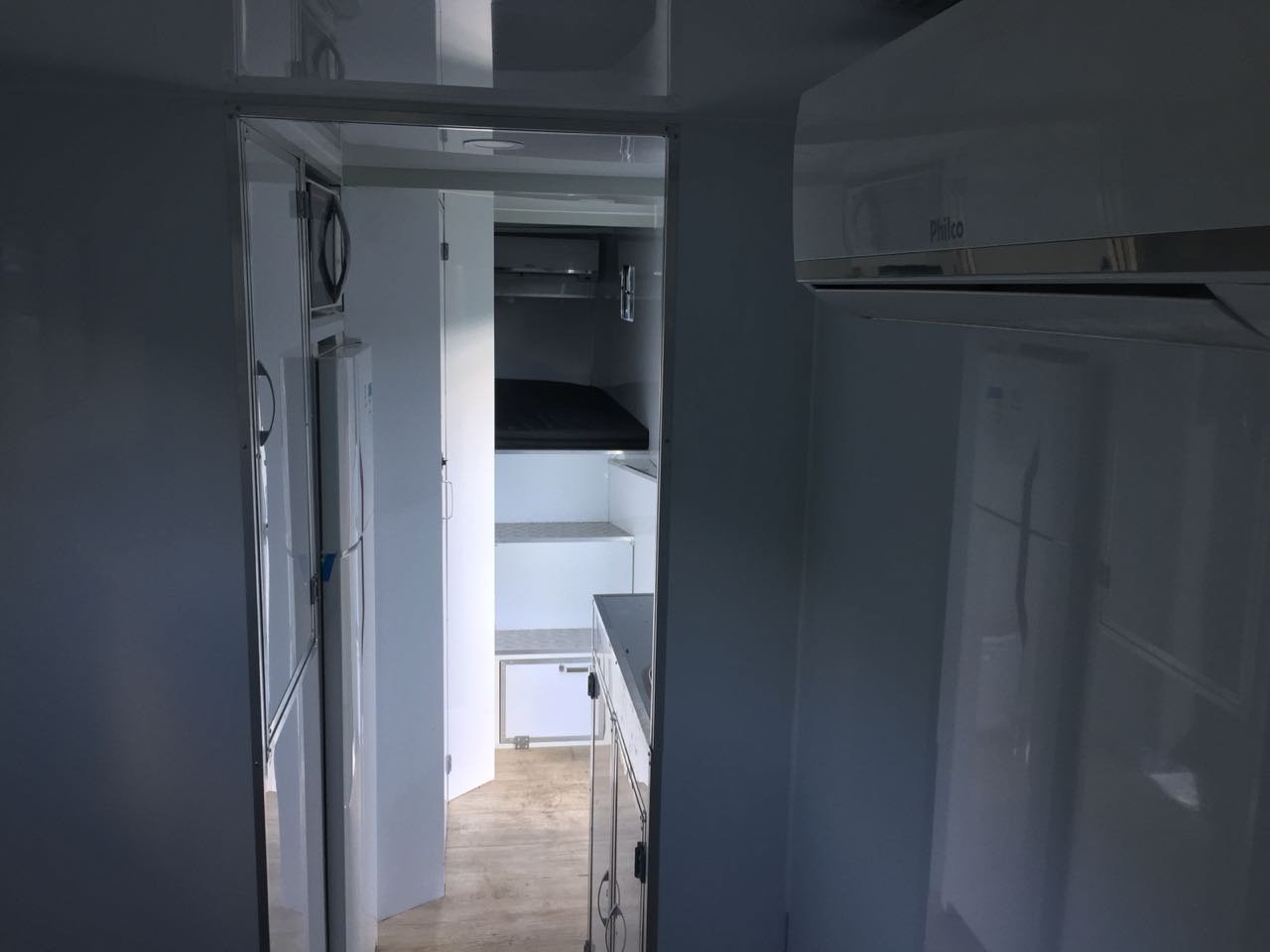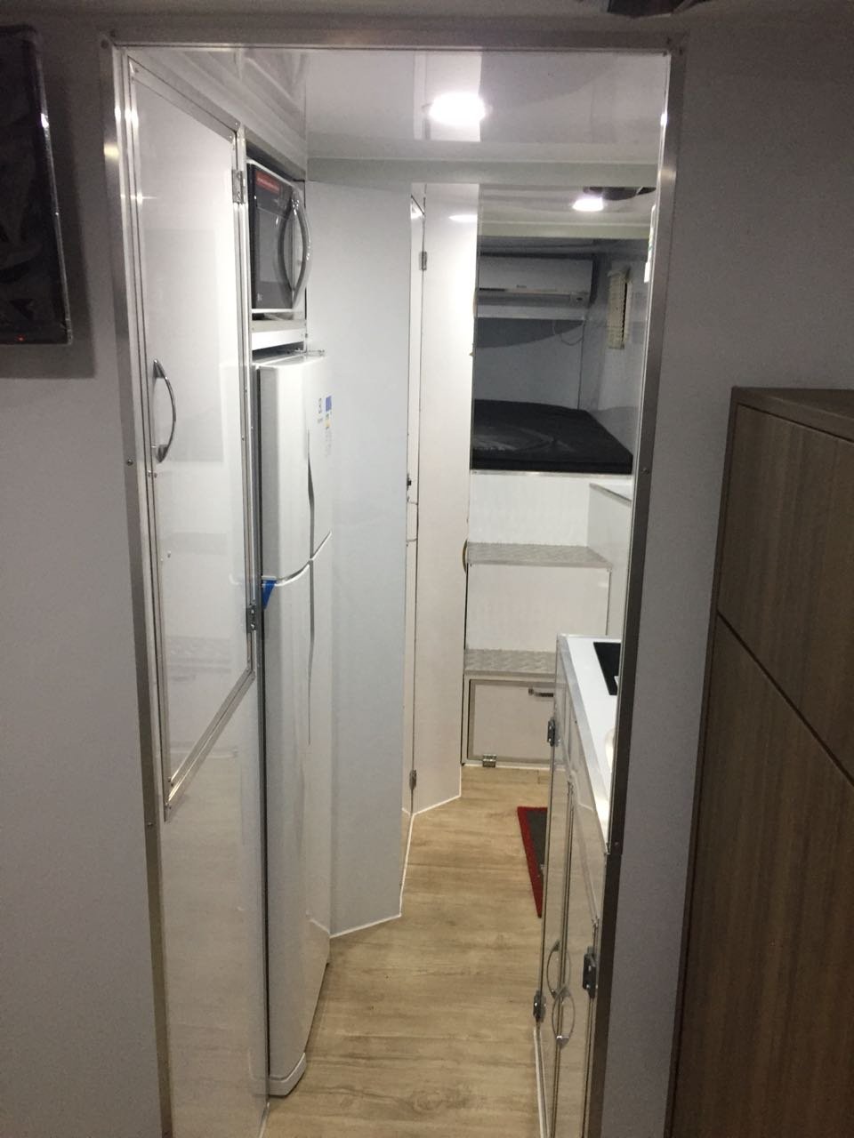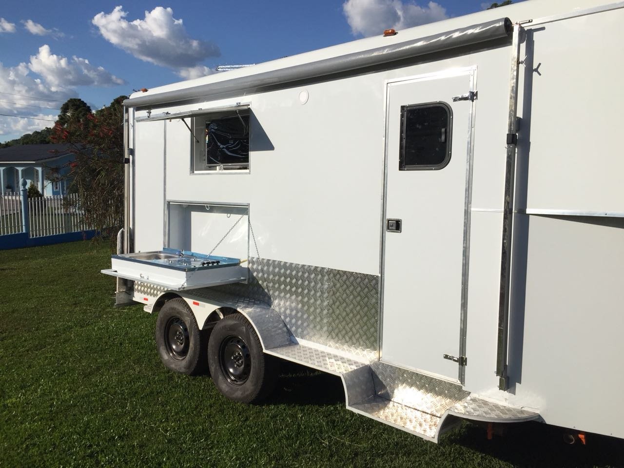 | Medidas externas 7,50 x 1,70 x 2,00 Chassi 100 x 40 x 15 x 3mm Revestimento interno e externo Alumínio Teto em Fibra Freio Hidráulico nas 04 rodas Iluminação interna e Externa LED Bagageiro Interno Pessoal Assoalho cozinha Comp. Naval/ Lâmina PVC Cama de Casal Pia e fogão externo embutido Chuveiro elétrico Vaso sanitário importado economico Banheiro Pia no banheiro Pé de Apoio manual Bomba de água automática shurflo Depósito de Água de 140 litros Depósito de dejetos de 140 litros Amortecedores Suspensão Com Balancim Feixe de molas com 07 lâminas Rodas S10 Aro 15 Pneus Novos 205/75/15 Estepe pneu novo Para-lamas Duplo Estrutura em perfil dobrado Mesa lateral embutida Espera de TV embutida Espera para TV | OPCIONAIS - Toldo Mecânico (Unidade)