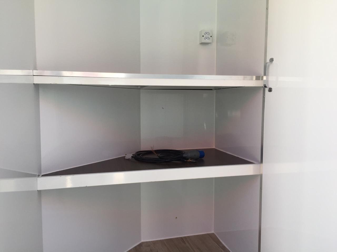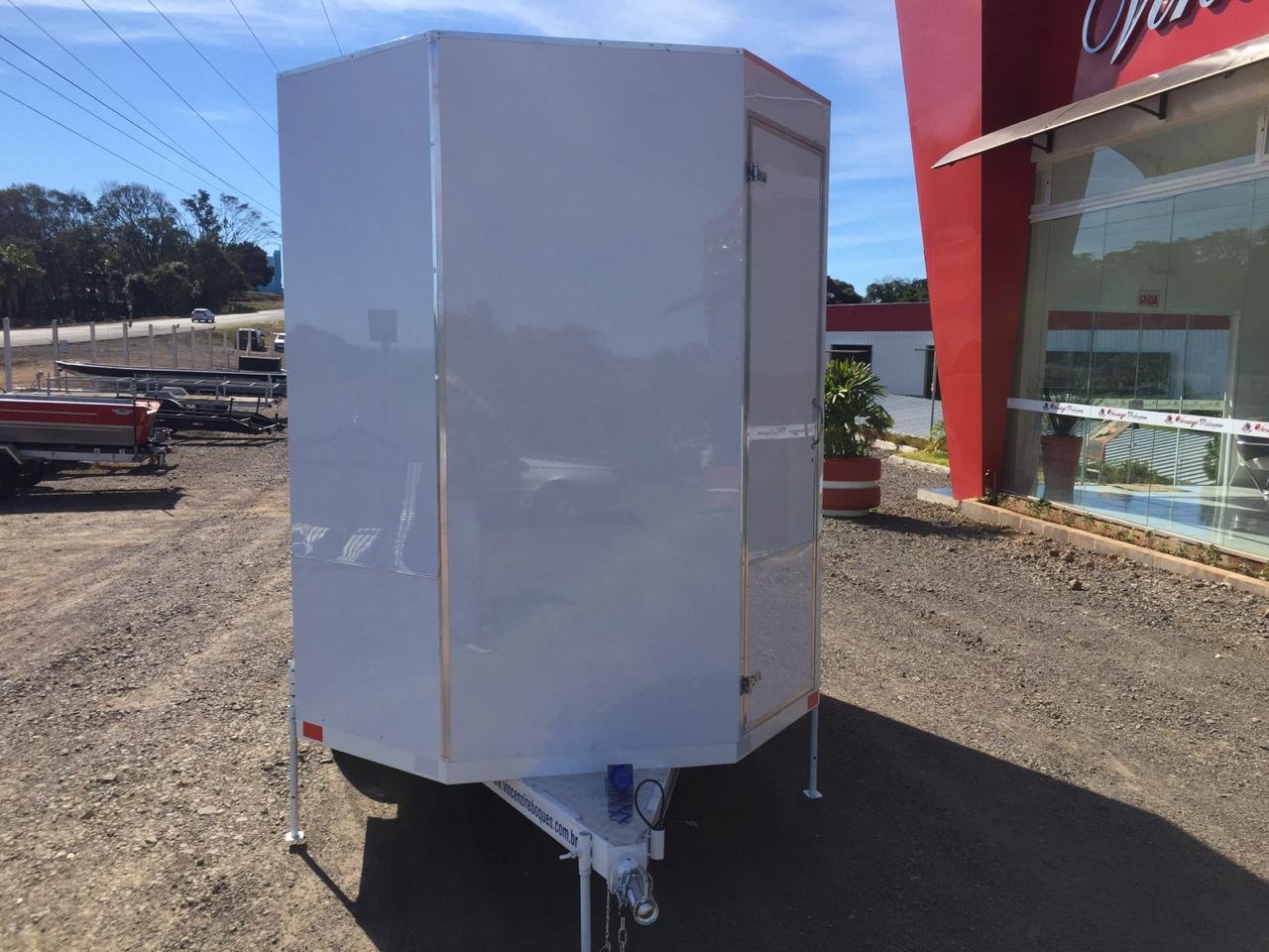 | Medida 2,50 x 1,80 x 2,00 Chapa Lisa ou Frisada em aço Assoalho em Compensado Naval Atendimento Lateral e Traseiro Porta de saída frontal Rodas Aro 14 Pneus novo | OPCIONAIS