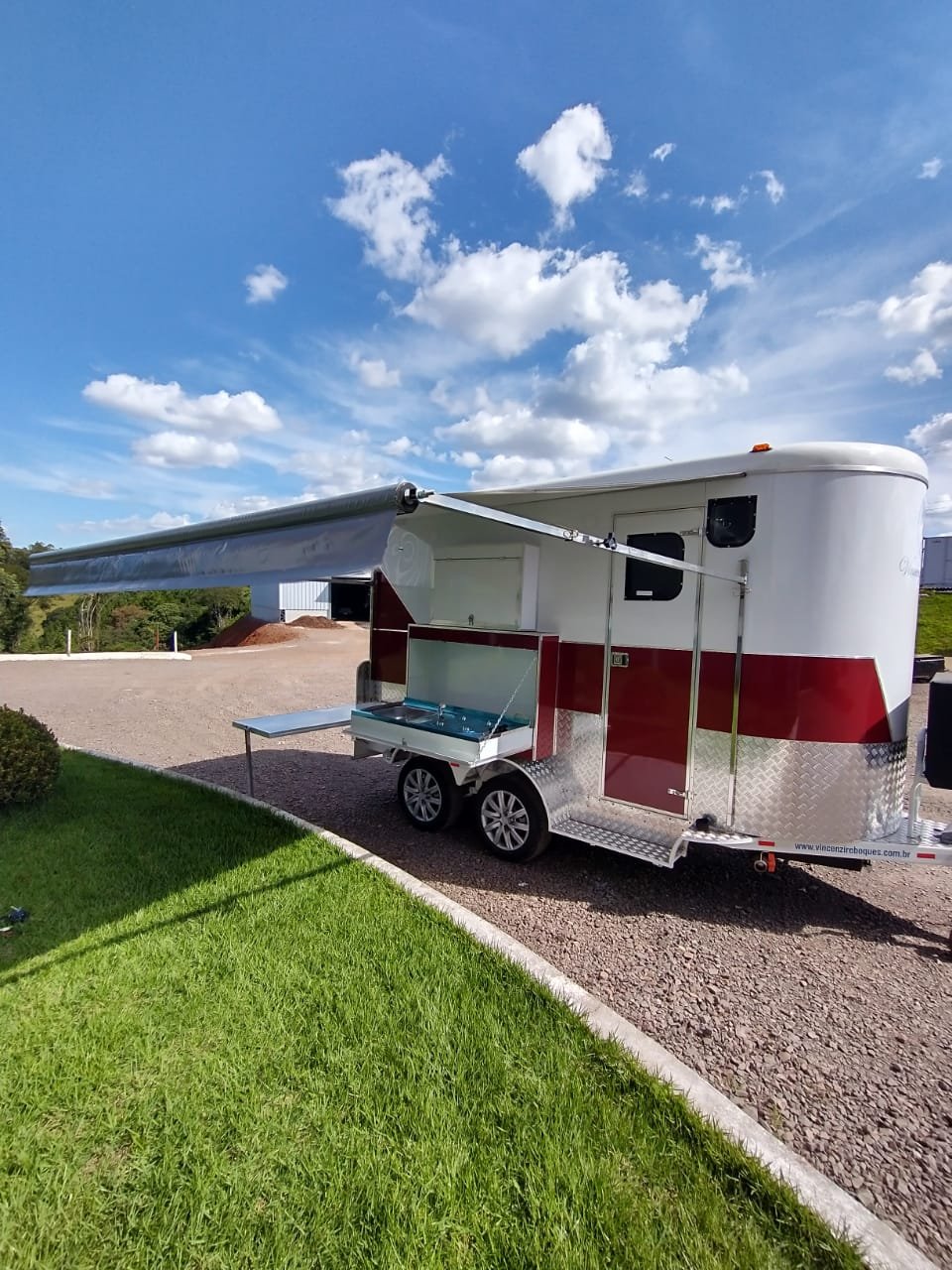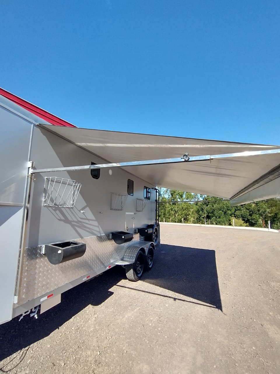 TOLDO LATERAL PARA TRAILER OU REBOQUE COM HASTES EM INOX E AUTO RETRATIL